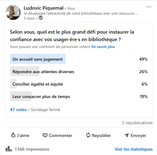 Selon vous, quel est le plus grand défi pour instaurer la confiance en avec usager.ère.s en bibliothèque ?