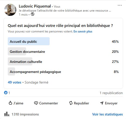 Quel est aujourd'hui votre rôle principal en bibliothèque ?