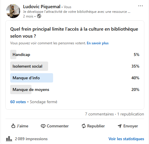 Quel frein principal limite l'accès à la culture en bibliothèque selon vous ?